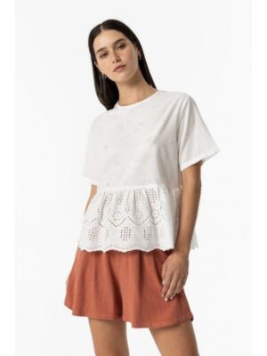 Blusa tiffosi blanca con troquelados manga corta mod. skye