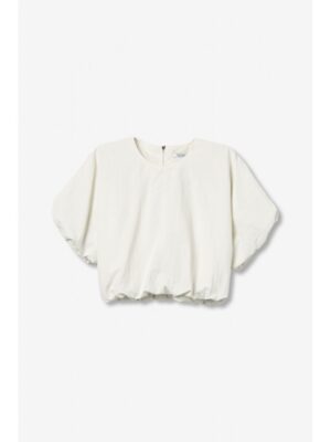 Blusa tiffosi blanca corta con bajo redondo engomado mangas con goma y cuello trasero con cremallera