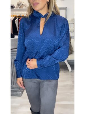 Blusa tiffosi con cuello mao abertura delantera en pico color azul mod. stephanie