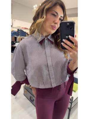 Camisa de Rayas Relish con espaldada descubierta y nudo blusa estilo romántico mod. Majadar