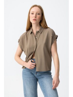 Blusa tiffosi beige viscosa con cuello polo mod. amora