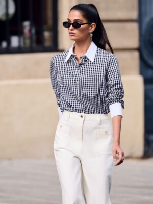 Camisa morgan cuadro vichy blanco y negro cuello contraste con botones joya mod. cvichy