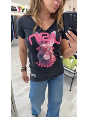 Camiseta La Sal negro desgastado escote pico mod. Rabbit