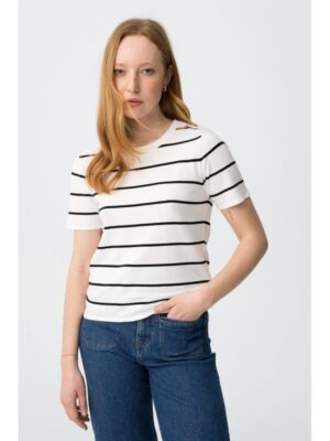 Camiseta de punto tiffosi blanco con rayas negro y botones dorados en hombro mod. rufina_1