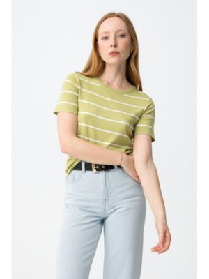 Camiseta de punto tiffosi verde con rayas blancas y botones dorados en hombro mod. rufina_1