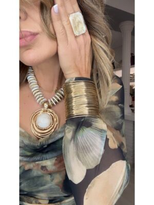 Anillo maxi dorado piedra animal print talla única