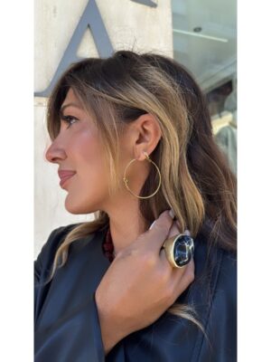 Anillo maxi oval dorado con piedra negra incrustada