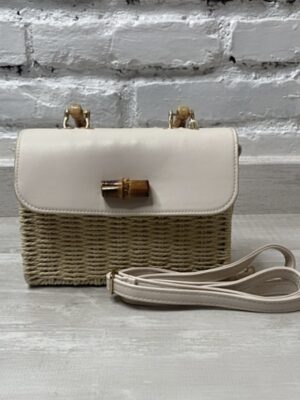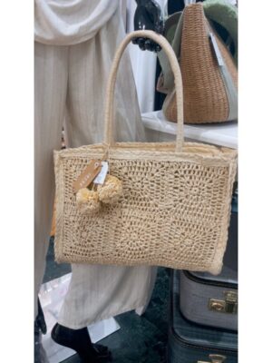 Bolso tiffosi trenzado de papel asa cadena color natural mod. dominica