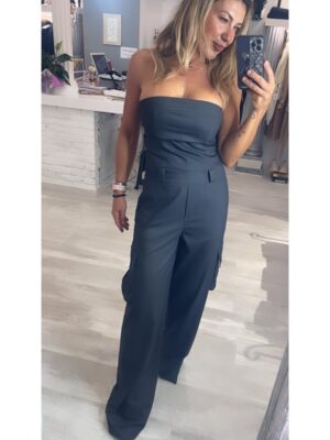 Mono relish gris obscuro sin mangas, pantalón palazzo mod. iole