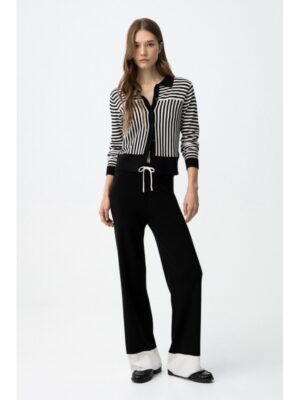 Pantalón negro tiffosi en punto straight fit con cintura elástica, cordón blanco y bajo ancho en beige claro mod.granger_b