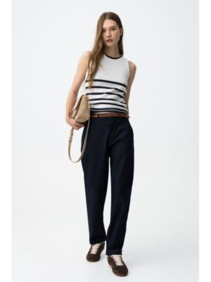 Pantalón tiffosi chino azul denim oscuro dobladillo en bajos con cinturón mod. Emily_1