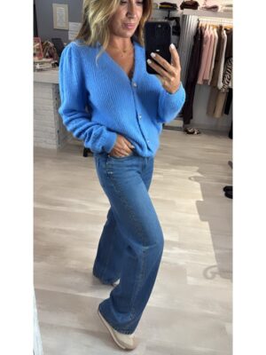 Vaquero tiffosi palazzo color azul charm y boton de corazones