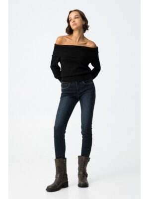 Vaquero tiffosi corte cropped tono azul oscuro y detalles metálicos mod.mengan_127