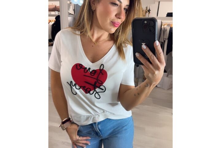 Camiseta morgan blanca dibujo corazón “Love Story” mod.DSTORY