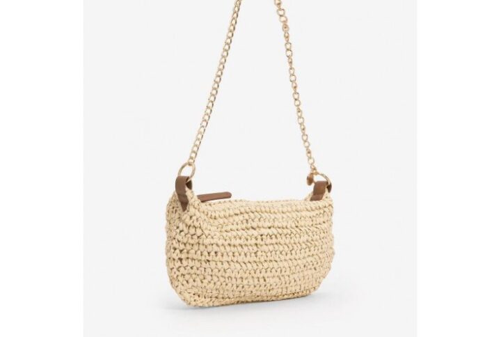 Bolso tiffosi trenzado de papel asa cadena color natural mod. dominica