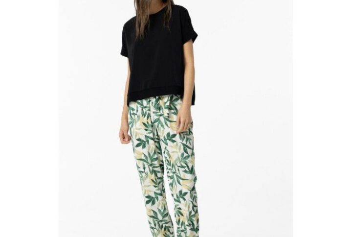 Pantalón tiffosi estampado hojas cintura engomada con cinturon mod.agnes