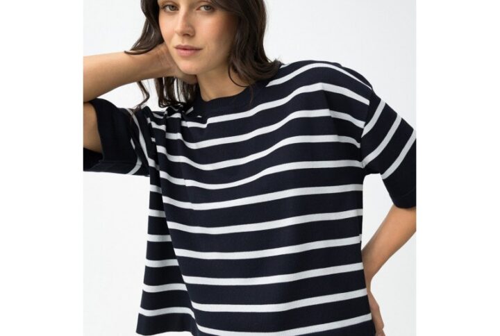 Camisa morgan blanca satinadacon rayas negro modelo Cline