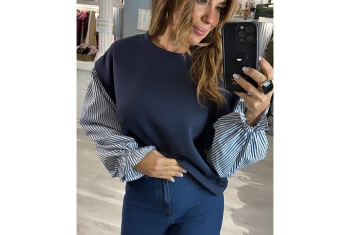 Camiseta de punto tiffosi blanco con rayas negro y botones dorados en hombro mod. rufina_1 cantidad