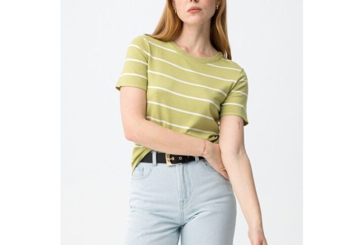 Camiseta de punto tiffosi verde con rayas blancas y botones dorados en hombro mod. rufina_1 cantidad
