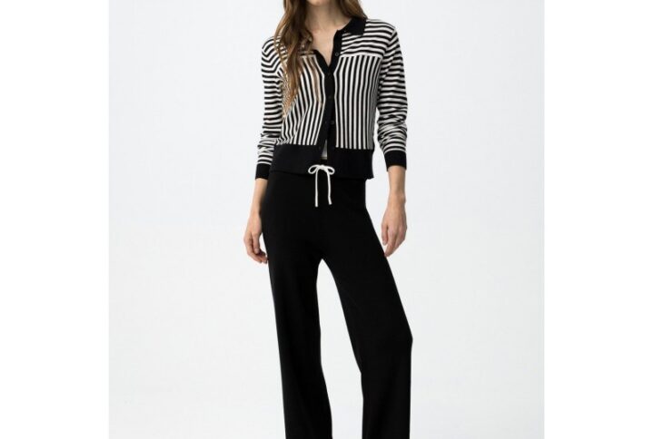 Camiseta de punto tiffosi blanco con rayas negro y botones dorados en hombro mod. rufina_1