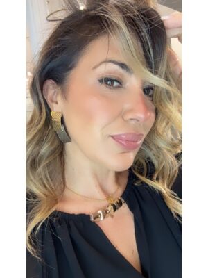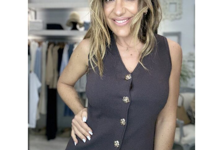 Chaleco tiffosi punto marrón escote pico botones flor dorada mod. fleur
