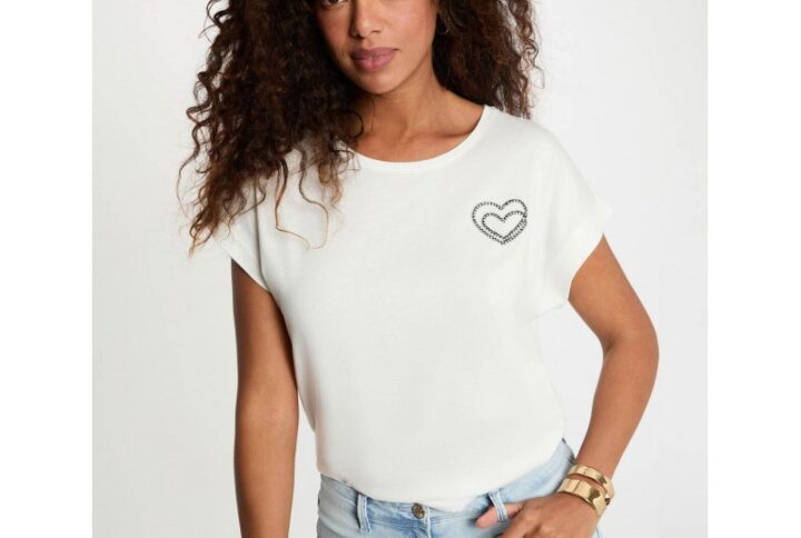 Camiseta Morgan blanca m/c con corazon strass frontal mod. dimoi