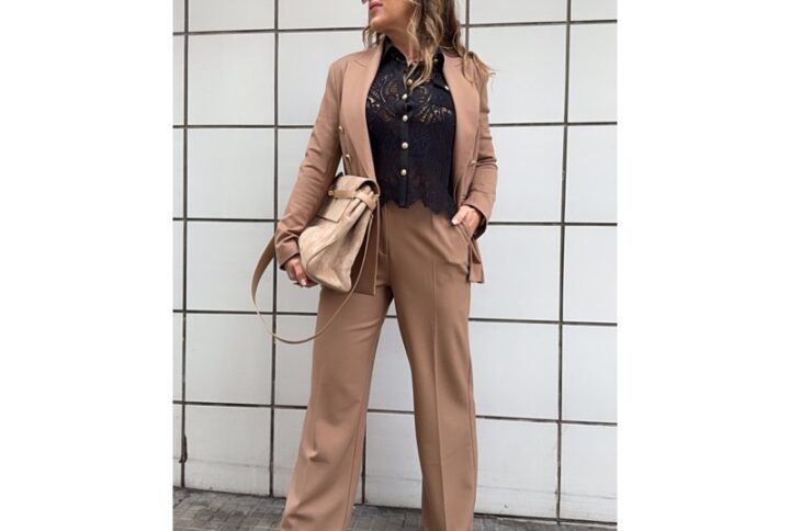Pantalón morgan ancho tipo traje color camel mod. pfali.f