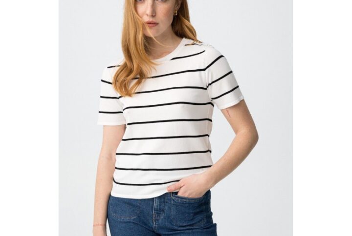 Camisa morgan blanca satinadacon rayas negro modelo Cline